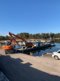 Modular barge with two support legs.