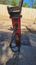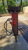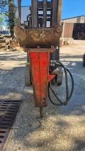 Marteau hydraulique OU Brise roche hydraulique BRH occasion pour mini pelle entre 5 à 8 tonnes, avec raccord, flexible, platine sur axes, bon état général, prix HT départ 86