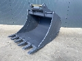 Brand new bucket with a connection OQ80. The bucket is 1.40 mtr wide and has a capacity of 1.470 cubic meter. The bucket is suitable for machines which have a tonnage between 23 to – 29 to.