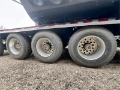 6-axle side dump semi-trailer engineered for heavy payload control. Air-ride suspension with steerable lift axles on #1, #2 & #6; #3–#5 fixed for tracking and stability. 53' overall with a 40' 3/16" HARDOX 500TUF steel tub for abrasion resistance. Aluminum single wheels. Aero Sidekick 2 electric tarp with safety switch. Two-speed landing gear, rock guard, bolt-on push block, and fender belting for jobsite protection. Equipped with drum brakes.