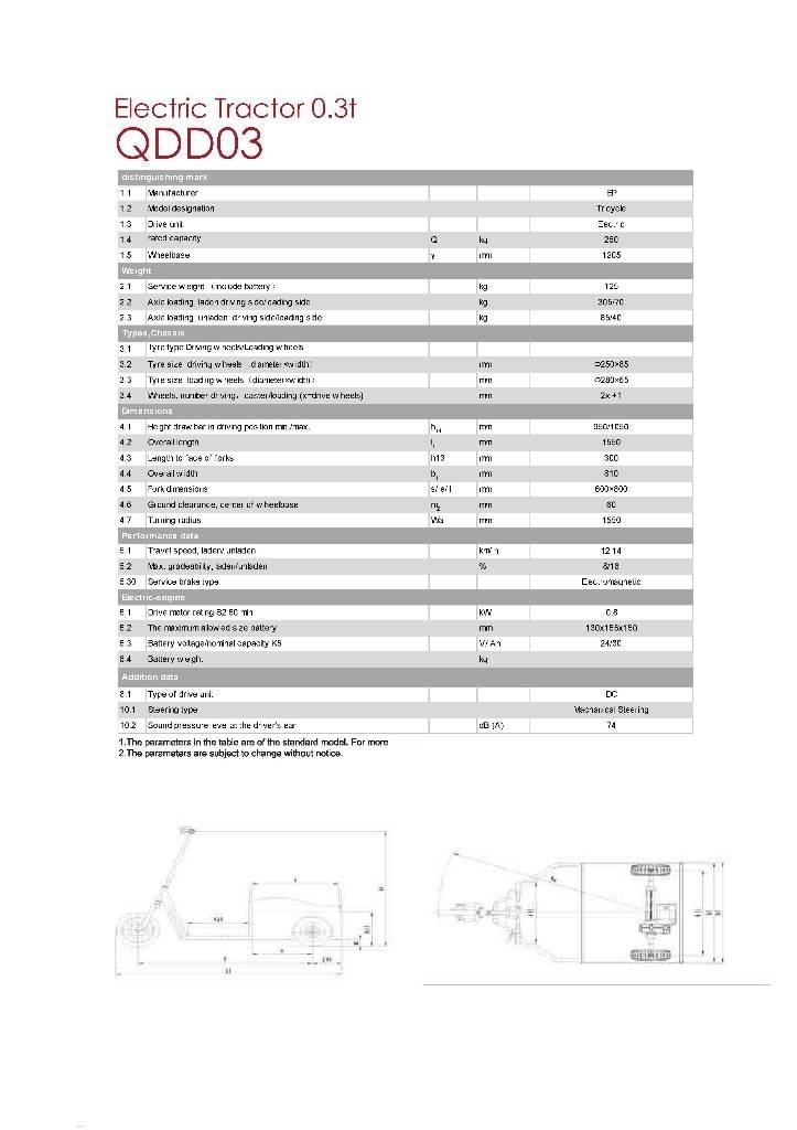 The basic design of the QDD03 is an electric towing tricycle, with powerful engine to tow a load up to 250kg.