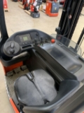 Endkundenbemerkung: Die Angabe der Betriebsstunden kann aufgrund von Zwischenvermietungen vom tatsächlichen Wert abweichen. Aktuelle Betriebsstunden erhalten Sie jederzeit gerne auf Nachfrage. Die Auslieferung des FFZ erfolgt mit gültiger FEM-Prüfung und technischer Durchsicht in unserer Werkstatt., Sonderausstattung: Doppelpedal, seitlicher Batteriewechsel mit Rollen, 180°Lenkung, 5,5 km/h bei Gabelzinken über 1000 mm, Max. Fahrgeschw. 12 km/h, ISS Vorbaumaß 80 mm, Innenspiegel Panorama, luftgefederter Sitz Kunststoffbezug, Zenralhebel-Betät.LLC, Einzelhebel-Betätigung, Terminalhalter, Höhenanzeige, BlueSpot i. Fahrtrichtung vorwärts, Leistungsstufe Efficiency