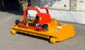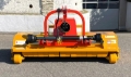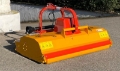 Gerät mit Zentralgehäuse aus hochfestem Stahl und verstärkt an neuralgischen Stellen. Seitenwände des Grundgehäuses extra stark, Gehäuseform nach vorne verlängert, um den Auswurf von Steinen oder Mulchgut zu verhindern, und mit starkem Steinschlagschutz-Vorhang. Revolutionärer zentraler Antrieb, ohne seitliche Aufbauten (Keilriemenabdeckung), wesentlich für das Mulchen der Zeilen in einem Arbeitsgang. Antriebsgetriebe zentral mit integriertem Freilauf. Höhenverstellbare Laufrollen vorne und Walze hinten (Ø 170 mm) um leichtes Gleiten und Manövrierfähigkeit zu gewährleisten. Rotorwelle mit gesenkgeschmiedeten Universalschlegeln aus Spezialstahl zur Gewährleistung größtmöglicher Widerstandsfähigkeit und Zuverlässigkeit auch bei schwersten Arbeiten (optimal für das Zerkleinern von Gras, Holz (max. Ø 100 mm), Maisstängeln, Stroh usw.) Inneres Gegenmesser für optimale Zerkleinerung des Mulchgutes.