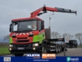 Number of axles: 4, Configuration: 8x4, Own weight: 18925 kg, Gross vehicle weight: 37000 kg, 2nd fueltank, fifth-wheel: Fixed, Diff. locks: 2, Winch, Suspension type: air suspension, Cabin type: Short cabin, Cruise control, Tacho, Digital tachograph, Airconditioning, Electric windows, Electric mirrors, Radio/cassette, GPS navigation, Color: Red, Heated mirrors, Reversing camera, Lighting type: Halogen lamps, Climatecontrol, Bluetooth, Flashing lights, Engine capacity: 302 Kw (405 Hp), Fuel type: Natural gas, Euro: 6, Gearbox kind: Opti-cruise, Gearbox make: Scania, Number of Gears: 12, Add. break system, Retarder make: Scania, Power steering, ABS, ASR, PTO, Starter battery, Twistlocks: 1x20, Pump, Central locking, Seats configuration: 1+1, Seat cover: cloth, Chair adjustment: Manually, Crane, Crane make: Fassi F235A, Year crane: 2022, Capacity crane: 23, Maximum load: ?, Number of supports: 2, CE-approved, Control position: side control left, Remote control, Crane position: Behind the cabin, Hydraulic extendable: 3 times, Extra hydr. conn.: none, Hook, Taillift, Tail-lift kind: normal, Tail-lift material: steel, Tail-lift size: 425 x 250, CNG,FASSI F235,hydr whinch&ramps