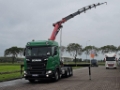 Number of axles: 3, Configuration: 6x4, Own weight: 103780 kg, Gross vehicle weight: 26000 kg, Total fuel capacity: 500 litre, Trailer coupling, Kingpin size: 40 DIN, Fifth wheel height: 130 cm, fifth-wheel: Slide, Diff. locks: 2, Suspension type: air suspension, Cabin type: Highline, Cruise control, Tacho, Digital tachograph, Airconditioning, Parking heater, Electric windows, Electric mirrors, Radio/cassette, Carplay, GPS navigation, Color: Green, Heated mirrors, Lighting type: Led lamps, Speed limiter, Laneassist, Climatecontrol, Seat heating, Bluetooth, Blind spot sensor, Flashing lights, Engine capacity: 331 Kw (444 Hp), Fuel type: diesel, Euro: 6, Gearbox kind: Opti-cruise, Gearbox make: Scania, Speed limiter, Number of Gears: 12, Add. break system, Retarder make: Scania, Power steering, ABS, ASR, PTO, PTO type: 1, Starter battery, Pump, Central locking, Seat cover: cloth, Chair adjustment: Manually, Crane, Crane make: HMF 2320, Year crane: 2023, Capacity crane: 23, Maximum load: 490 kg bij 21,5 m, Number of supports: 2, CE-approved, Control position: side control left, Remote control, Crane position: Behind the cabin, Hydraulic extendable: 8 times, Extra hydr. conn.: none, Hook, Crane winch